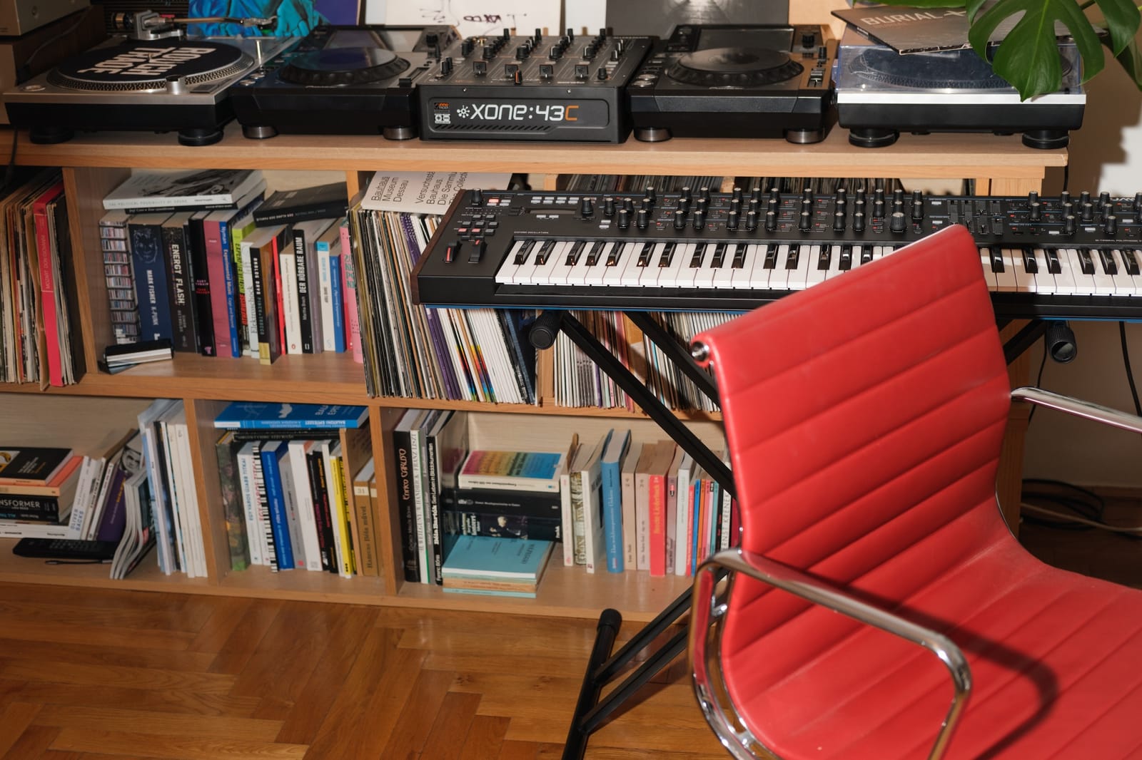 Ezen túl szintetizátorként is használom a laptopomat, illetve szerkesztésre és elrendezésre is használom időben lineáris módon, vagyis timeline-alapúan. Szeretek formákat építeni, szeretem, ha valaminek van egy dramaturgiája. Használok digitális vst-ket, nagyon szeretem a Reaktort (szoftveres moduláris szintetizátor környezet a Native Instrumentstől – a szerk.). Ezekkel együtt pedig mindig ott van nálam a midi kontrollerem, amivel vezérelni tudom a dolgokat, talán, mint egy sokszínű zenekart. A laptop tehát csak tartalmazza azokat a dolgokat, amiket használok, de mindig kell hozzá egy haptikus interfész. A midi kontrollerem volt az első hardver eszköz, amit beszereztem, és fontos volt, hogy a többoktávos billentyűzet mellett potik és tolópotik is legyenek rajta.