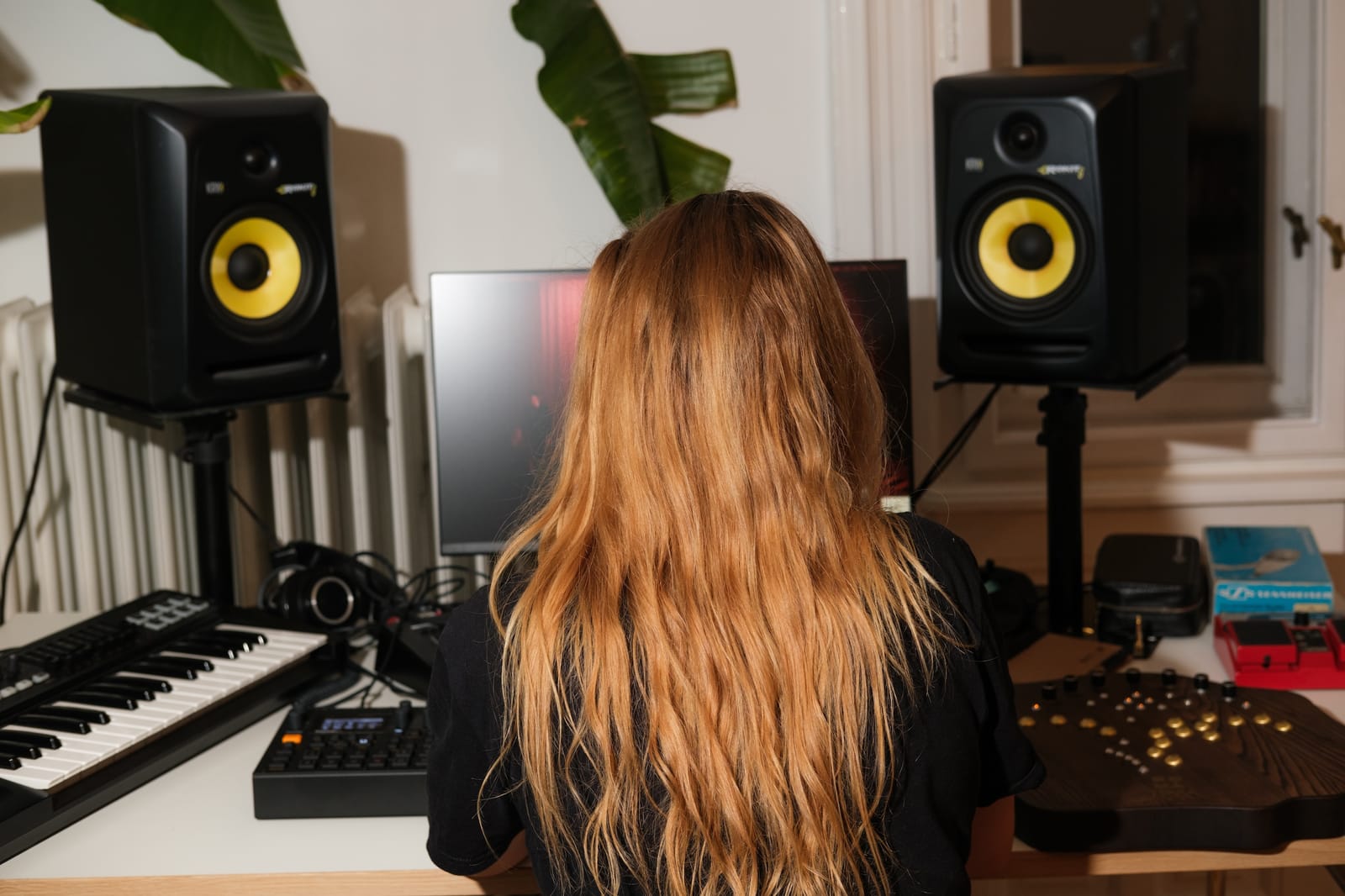 Az élő fellépéseimkor általában még minimum egy vokálmikrofon is szerepel a setupomban, szóval amire például mindenképpen használom a laptopom, az az, hogy effektezem, szintetizálom az énekhangomat és a szólamokat. Ami nekem nagyon fontos, hogy haptikus legyen egy hangszer: mind a zeneírás folyamatában, mind a fellépésekkor. Kifejezetten szeretem azt, amikor az intuícióm visz egy bizonyos irányba, ezt pedig szerintem úgy lehet kikísérletezni, hogy kipróbálsz új dolgokat – és ez nekem személy szerint úgy műkődik jobban, ha valaminek van egy haptikus interfésze.
